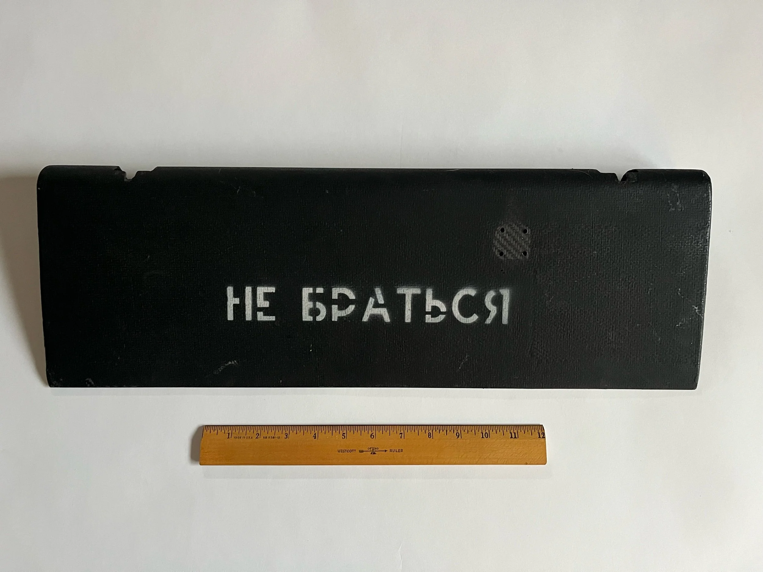 Ironically, this piece has “НЕ БРАТЬСЯ” which translates to “DO NOT TAKE” painted on it.
