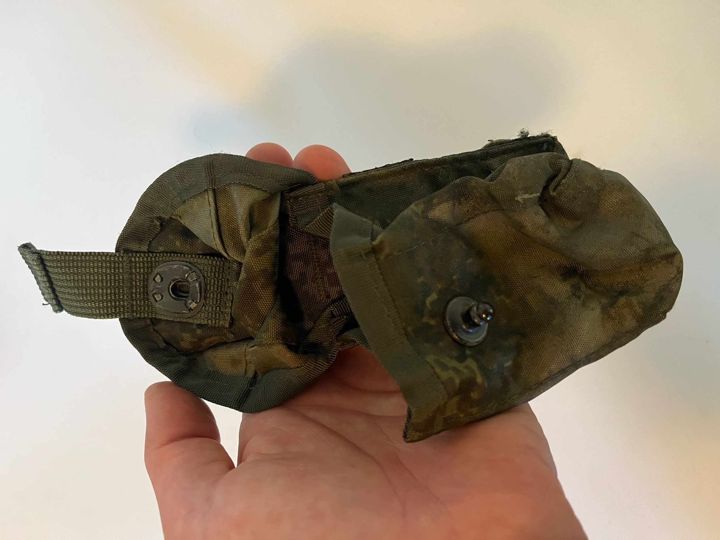 These captured Russian Techinkom tactical pouches were designed to carry one RGO, RGN, RGD-5, F-1 hand grenade and keep it free from dust and debris while in the field.