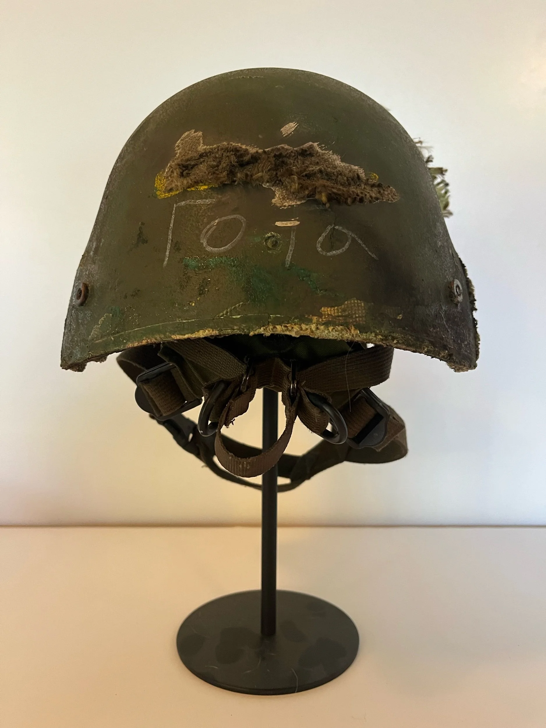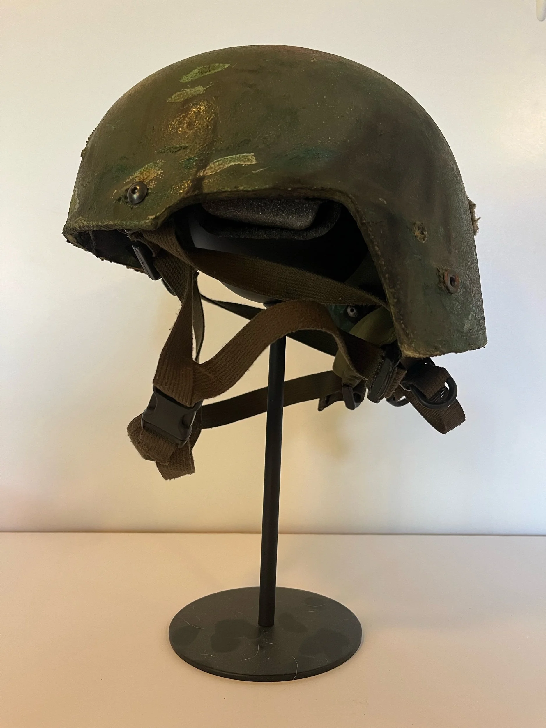 This helmet is heavily battle-damaged, and is a grave reminder of the human cost of Putin’s war of aggression.